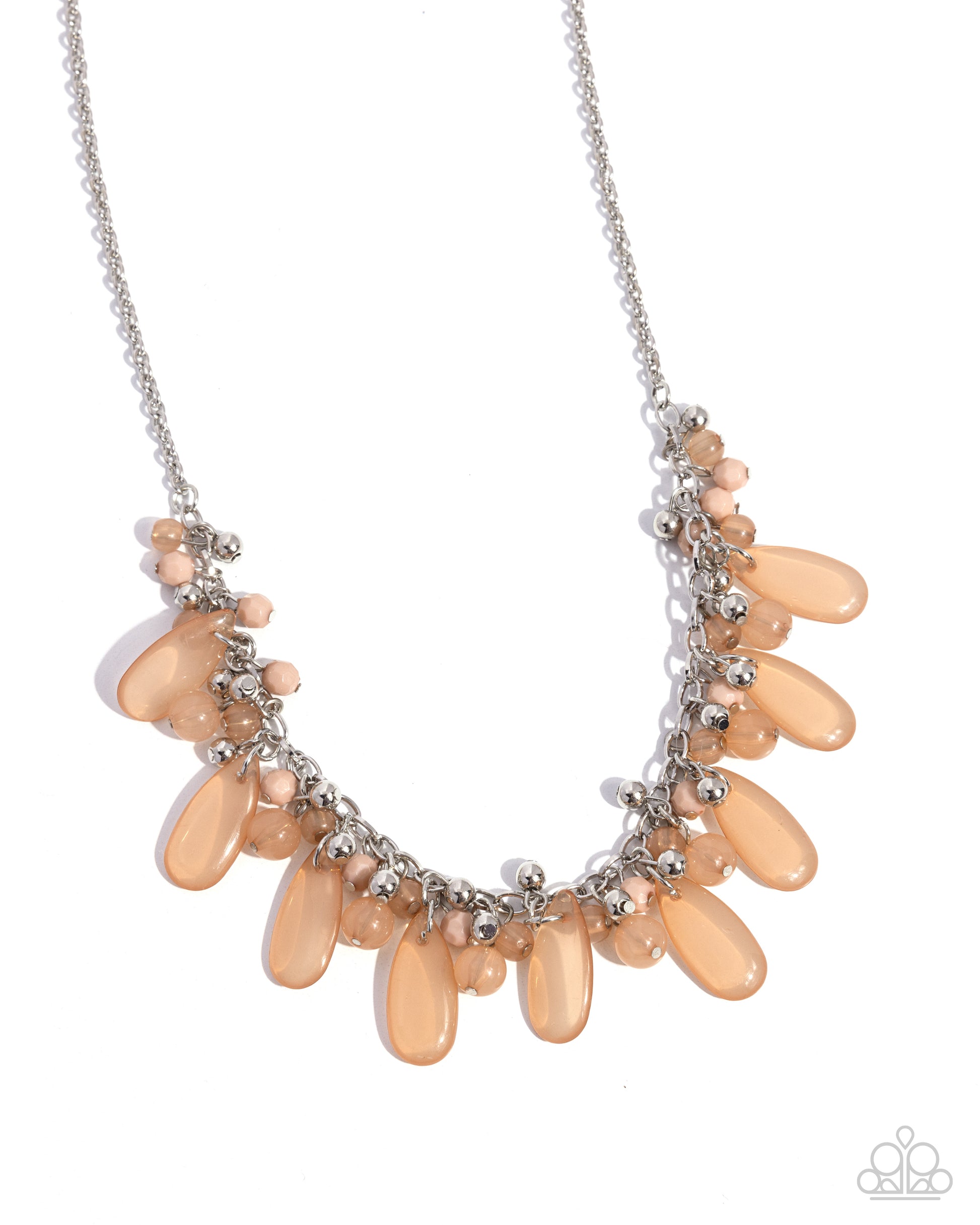 Infused with shiny silver beads, a refreshing collection of glassy and opaque brown teardrops and beads glisten from the bottom of a classic silver chain, creating a breezy fringe below the collar. Features an adjustable clasp closure .