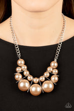 Separated by rectangular silver frames, bubbly rows of classic and oversized brown pearls are threaded along invisible wires at the bottom of a chunky silver chain for an effervescent explosion below the collar. Features an adjustable clasp closure.