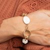 An artfully mismatched assortment of oversized gold links and geometric white stone beads delicately interlocks around the wrist for a desert-inspired theme. Features an adjustable clasp closure.