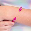 Featuring a dusting of rows of white rhinestones, a metallic pink-hued cuff with tactile spikes meeting at the center of the wrist glimmers for a seasonal look.
