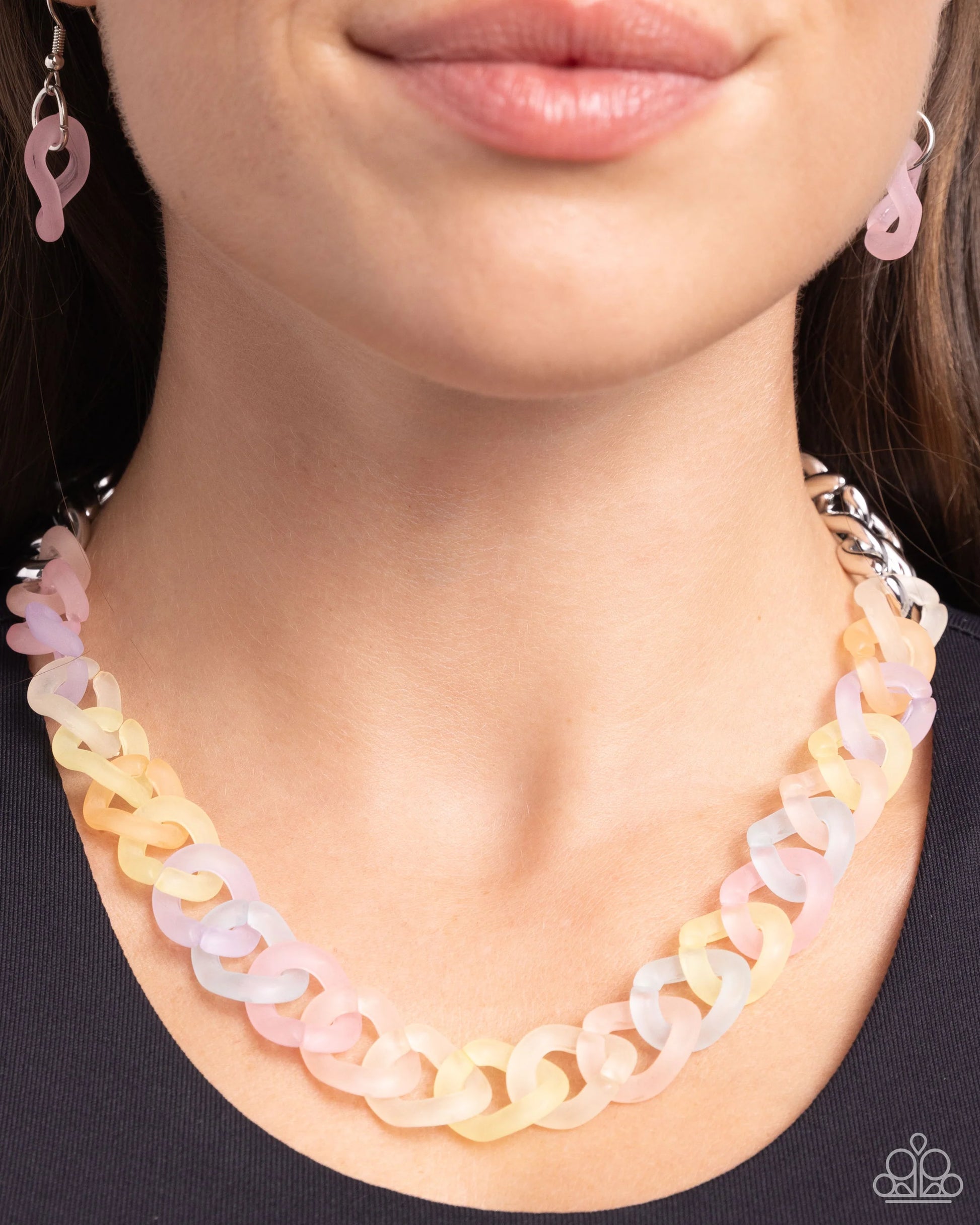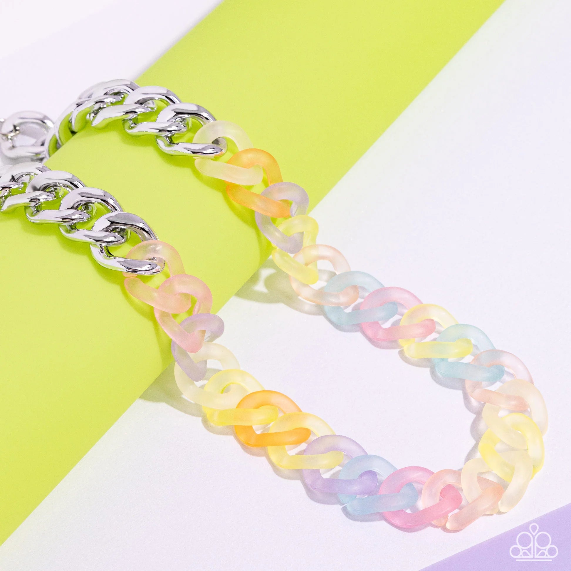 Featuring a kaleidoscope of colors, acrylic rings connect to high-sheen silver curb chain links for a magically multicolored display. Features an adjustable clasp closure.