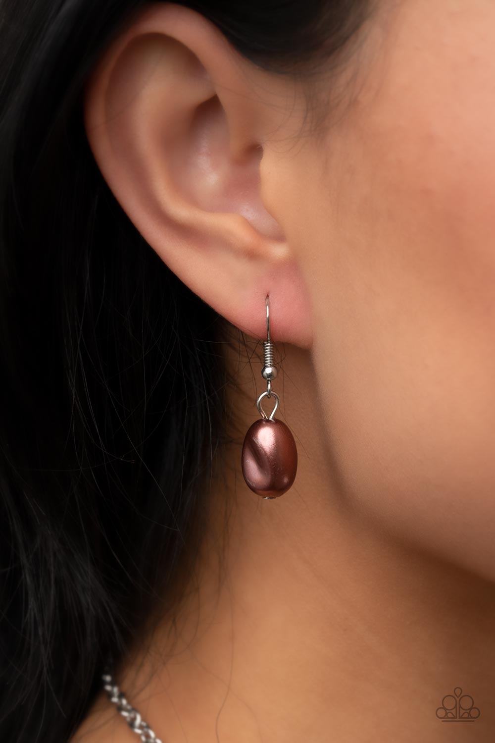Pebble-like brown pearls, textured silver links, and vine-like silver frames delicately connect into a whimsical compilation across the chest. Features an adjustable clasp closure.