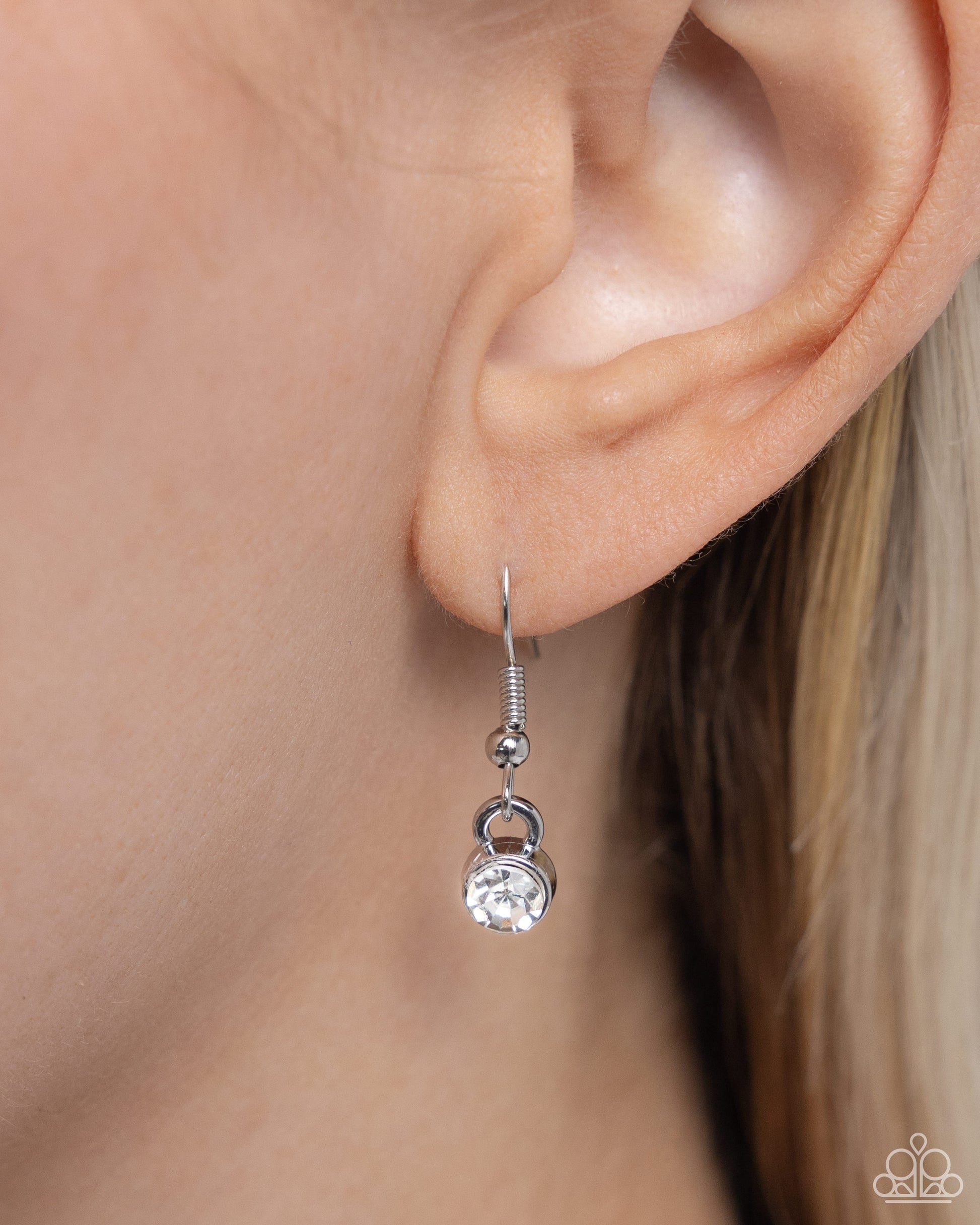 A gleaming black acrylic heart is nestled inside an airy, white rhinestone-encrusted heart frame, creating a charming pendant at the bottom of an exaggerated silver paperclip chain. A quintet of white gems interrupts the silver paperclip chain for additional refinement and shimmer. Features a toggle clasp closure.