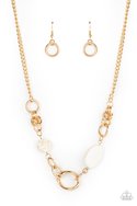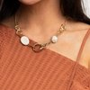 An artfully mismatched assortment of oversized gold links and geometric white stone beads delicately interlocks around the neck below the collar for a desert-inspired theme. Features an adjustable clasp closure.