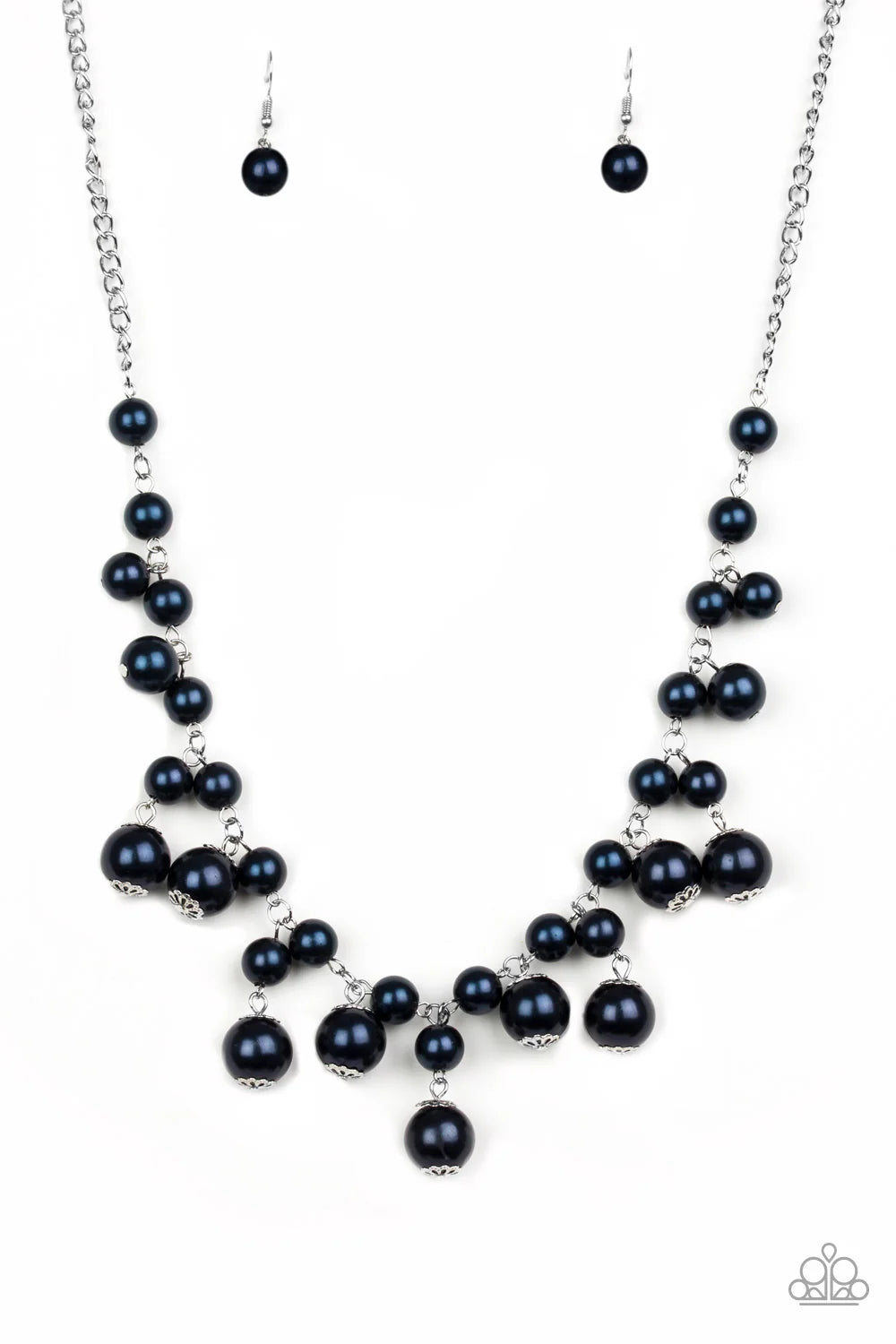 Varying in size, bubbly blue pearls swing from the bottom of a classic strand of pearls, creating a refined fringe below the collar. Features an adjustable clasp closure.